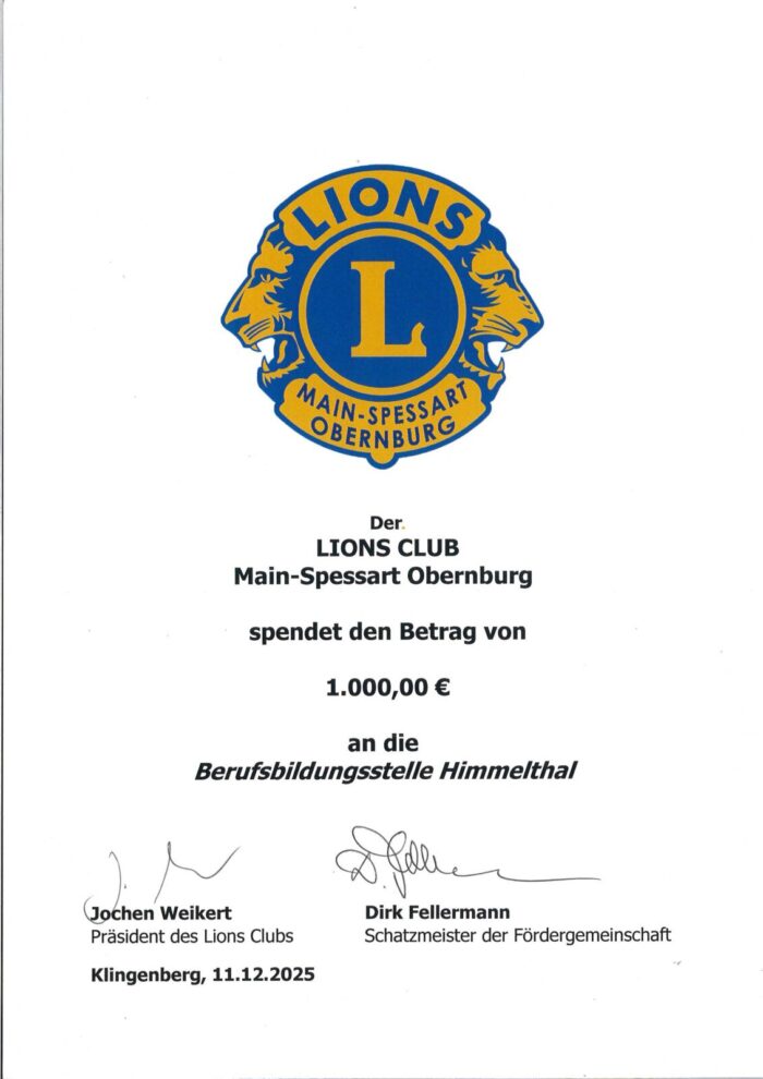 Gestern überreichte der Lions Club Obernburg unserem Einrichtungsleiter Marcus Vogt eine großzügige Spende in Höhe von 1.000 €.